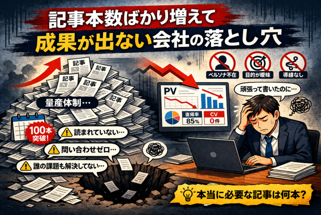 この記事では、記事本数ばかり増えて成果が出ない会社がはまりやすい落とし穴を整理しながら、