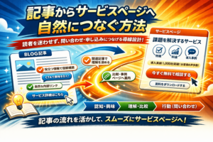 記事から比較記事、事例記事、サービスページへ自然に進めると、問い合わせまでの納得感が高まります。